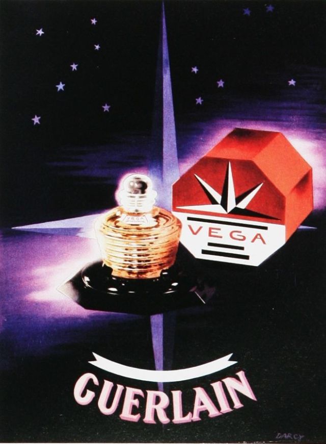 Composed by Jacques Guerlain in 1936, Vega was recreated by Jean-Paul Guerlain for the opening of the renovated La Maison Guerlain in the summer of 2006. It is an aldehydic floral including notes of rose, jasmine, ylang-ylang, iris, and sandalwood.