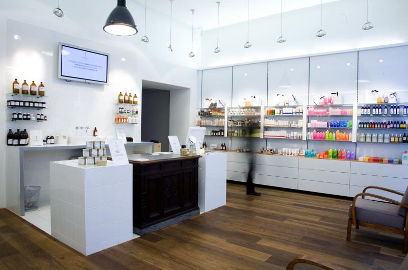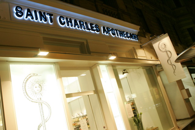 This time I am going to take you to an interesting spot in the sixth district called Saint Charles. It is a pharmacy that includes a boutique for organic, natural skincare, cosmetics and perfume – the Cosmothecary, a day spa called Hideaway and The Alimentary, a small organic restaurant where you can eat or take away delicious and healthy meals made from 100% organic sources. The approach of the founder Alexander Ehrmann seems to be to provide an all-approaches-covered feel-good service to his customers.