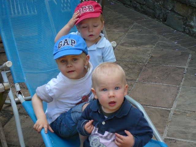 My boys and my nephew (in the red cap) in the garden
