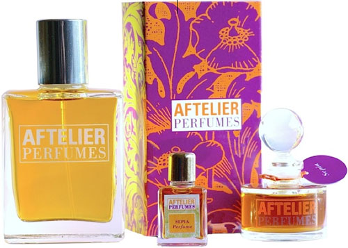 Sepia was created by Mandy Aftel and includes notes of blood cedarwood, pink grapefruit, yellow mandarin, pink lotus, jasmine, strawberry, cocoa, coffee, indole, ambergris, tobacco, labdanum, cepes and oud.