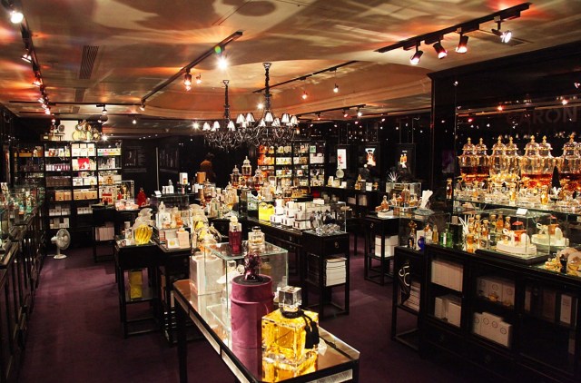 The plush surroundings of this store are a perfect backdrop to such beautiful perfumes as Puredistance, Parfums MDCI, the Caron urns, Guerlain extraits, and many more niche lines and classic perfumes, all personally selected by M. Dove. I smelled Truly by Stephen Burlingham, a favorite of Vanessa’s. There are only two bottles left, one extrait, one Eau de Parfum. It is discontinued and those two bottles are probably the last on earth. I did not buy it, in case Vanessa makes up her mind (after the Plus Ques Jamais incident, you swore to never let a bottle you love go, didn’t you, V?).