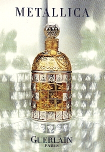 Metallica was created in 2000 as a limited edition in the gorgeous bottle you see above. After a copyright problem with its name (Has nobody at Guerlain heard about the band before?), it was re-issued as Metalys in the Parisiennes line, but has since been discontinued (which seems to be the primary function of the Parisiennes line: re-issue, then discontinue within months), it includes notes of bergamot, ylang-ylang, jasmine, orange blossom, carnation, orris, tonka bean and vanilla.