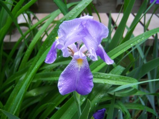Poodle’s photo of the single iris with the dew or rain water on it is so lovely. And the baby bird so adorable!