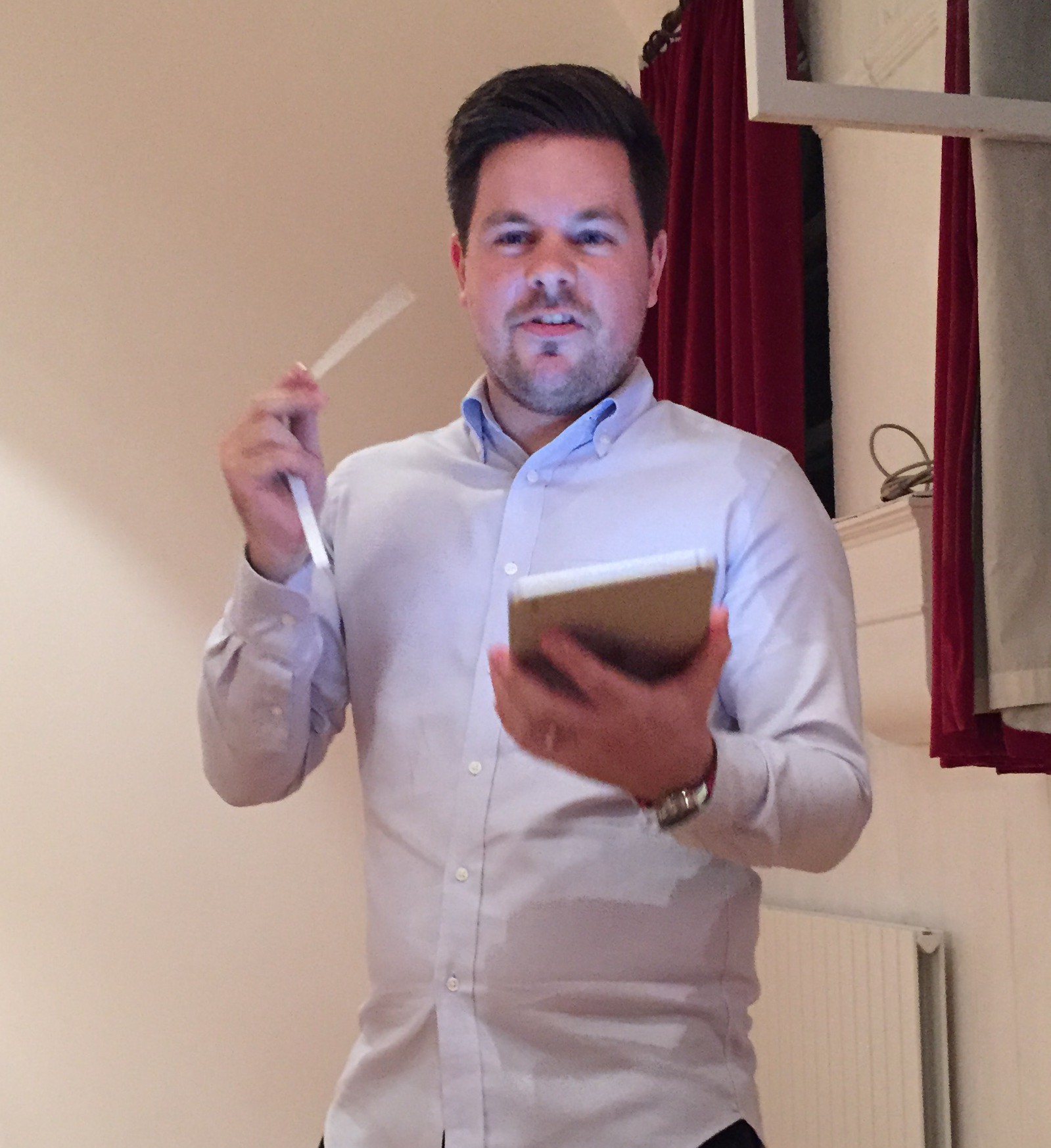 Thomas in action (Plese note that despite the rigours of the evening there is not a hair out of place!)
