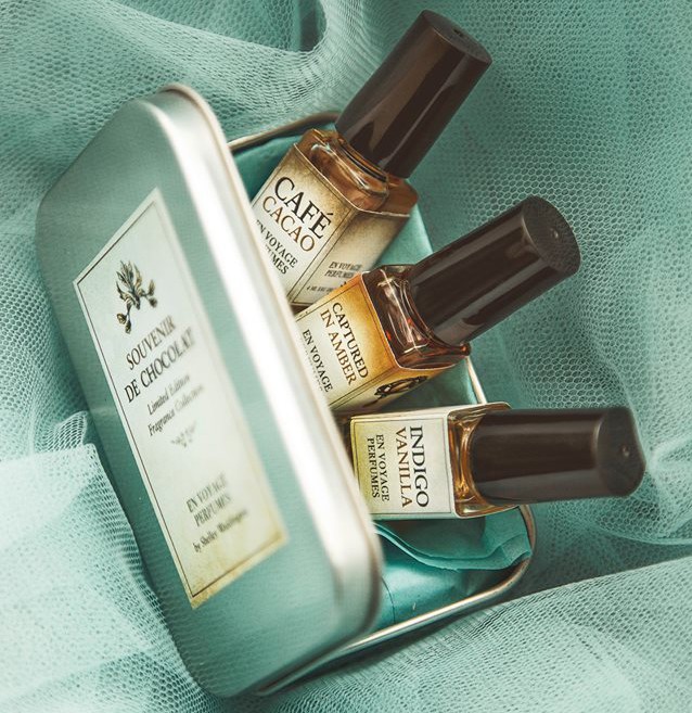 I do love gourmands and enjoy both eating and wearing chocolate (white, milk, dark…I love ’em all!!) My favorite cocoa perfume is SSS Cocoa Sandalwood…in the winter I crave these type of scents and I actually make a very affordable moisturizing body oil with lavender absolute and cocoa absolute diluted in sweet almond oil….these fragrances from En Voyage sound right up my alley! Thanks for the review and link 🙂 !!