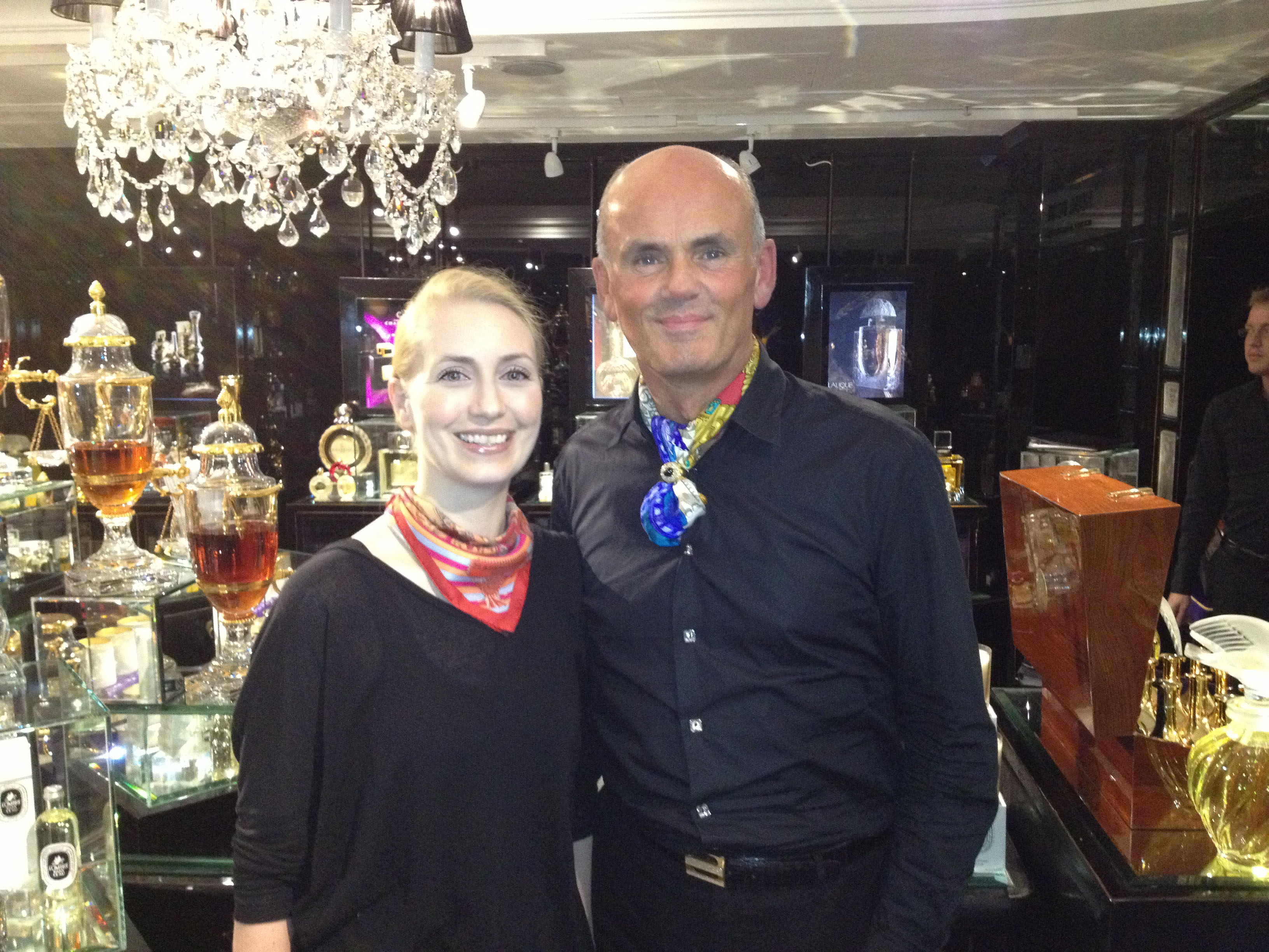 To add a personal story, (even perfume-related, yeah!), I wore this scarf when I met Roja Dove in his Haute Parfumerie in London. I was really nervous before meeting him and actually considered bolting and going for a drink instead, but then he came and right away commented on my scarf and – since he was wearing an Hermès scarf himself – we bonded over our love for silk. I relaxed and really enjoyed my time with M. Dove.