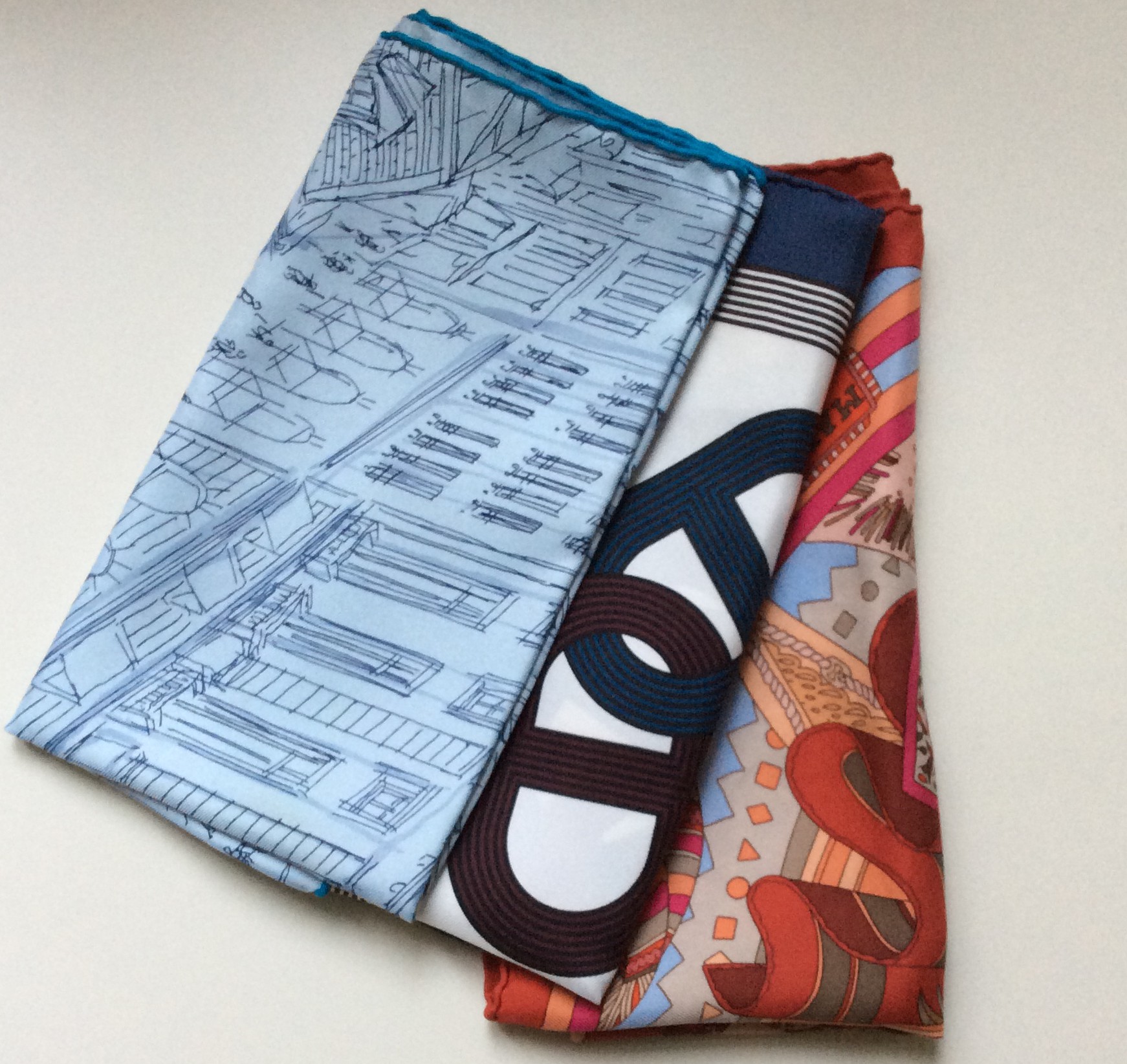 To start showing (off?) my scarf collection I thought to begin with the smallest formats I own, the silk pocket squares or pochettes, also called gavroches in Hermès-speak.