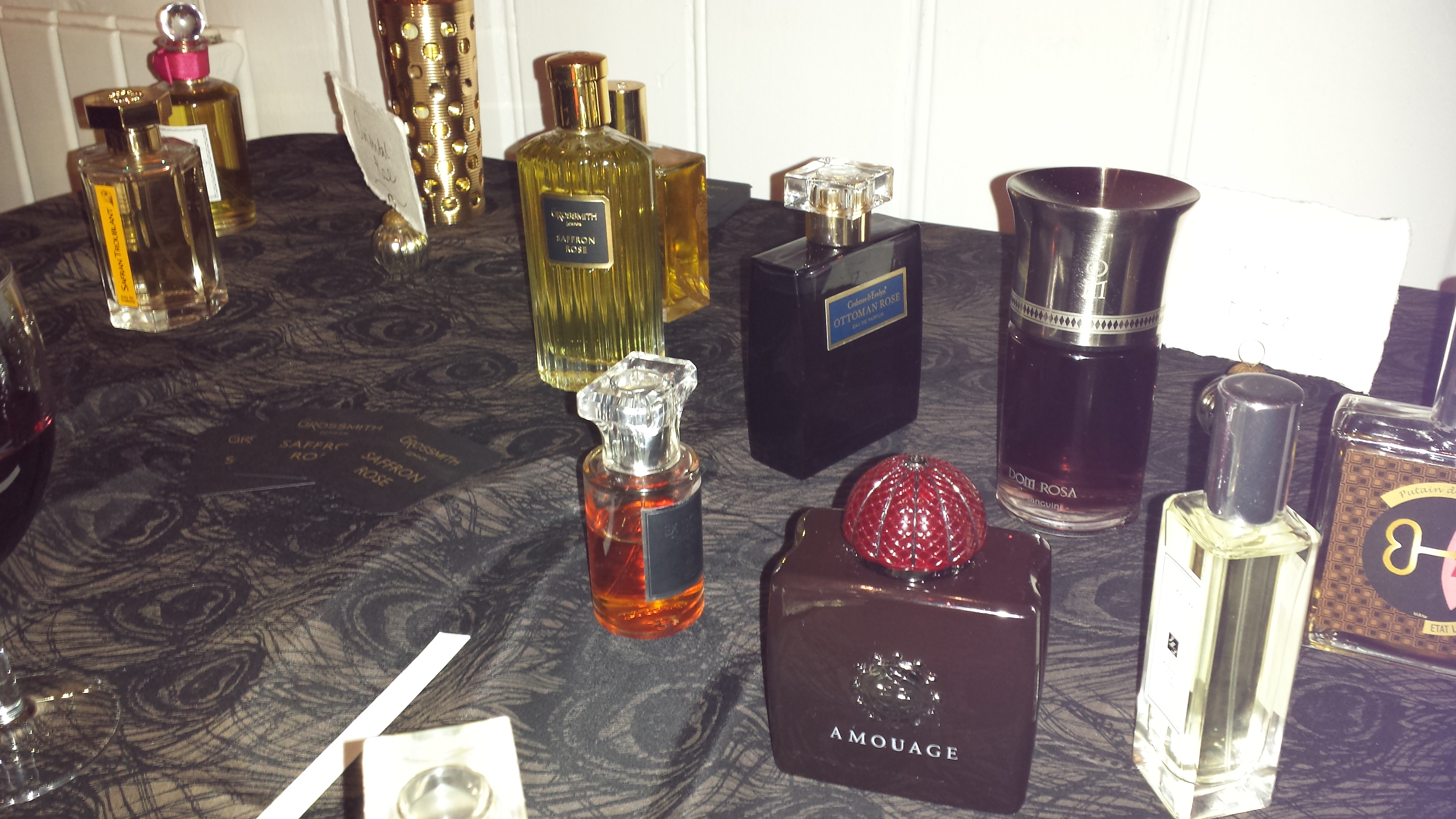 Aromatherapy tells us that rose oil makes us feel loved and beautiful. I’d say that’s about right. If ever I start the day feeling like I need a little extra shot of beauty in my life, I turn to a rose perfume. I like them full-bodied, on the dark side and definitely rose-heavy. However, I was very happy to try a whole range of different roses at this PLL evening.