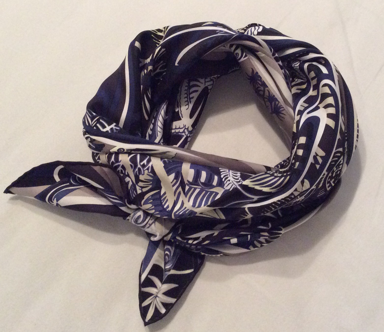 Get thee away temptress! Love your Hermes scarf series always but it does rather make one want one. Love the dark blue best – it would go with anything, blue-jeans or a little black dress. I can imagine you look very beautiful with both Birgit. Enjoy.